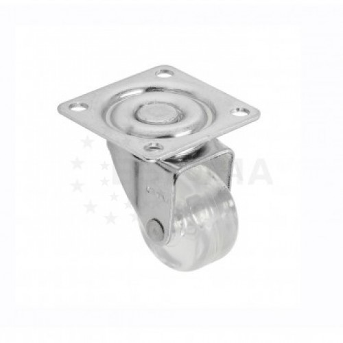Прозрачное колесо, материал PU+PC, D=35мм, без тормоза, плоская пластина 42*42, нагрузка 25кг, оцинкованный кронштейн