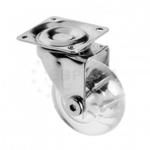 Прозрачное колесо, материал PU+PC, D=35мм, без тормоза, плоская пластина 42*42, нагрузка 35кг, оцинкованный кронштейн