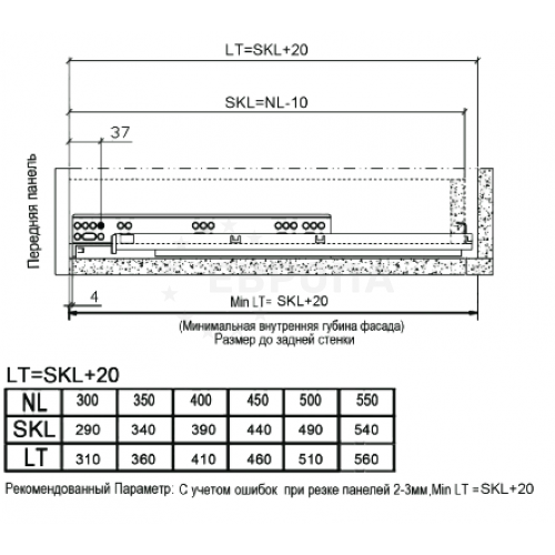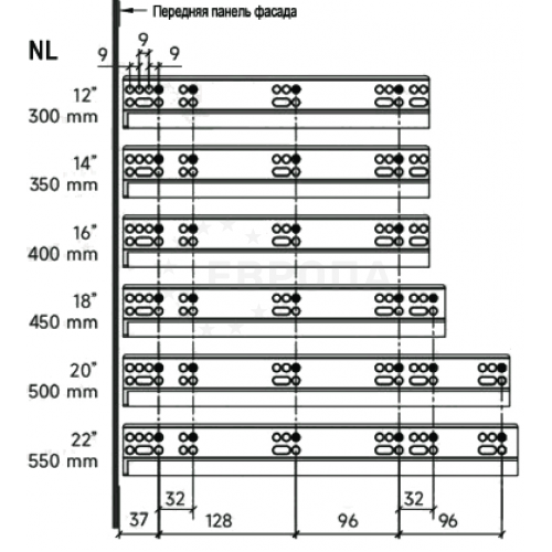 SKL=NL-10 Направляющие скрытого монтажа полного выдвижения серия "BOY", со способом установки мебельного ящика при помощи надвижного монтажа. НАПРАВЛЯЮЩИЕ СО ВСТРОЕННЫМ МЕХАНИЗМОМ СИНХРОНИЗАЦИИ. Стандартный монтаж. Все установочные размеры соответствуют размерной сетке известного Австрийского производителя.